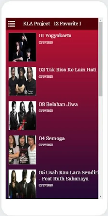 This application contains a collection of KLA Project songs along with other popular songs owned by renowned musicians in Indonesia such as Nicky Astria, Sheila On 7, and Iwan Fals. Most of their favorite hits are in this one application, which is certainly still very familiar to fans.