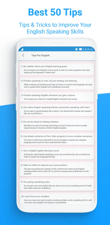 Not confident enough to talk in English with your friends, colleague, relatives? Then this native English speaking app for English practice is just for you. Ours learn spoken English app helps to overcome your fear or shyness of speaking in English by enabling you to talk English with real people all around the world without disclosing your identity. The best part? This free English speaking app enables you to improve English speaking skills free.
