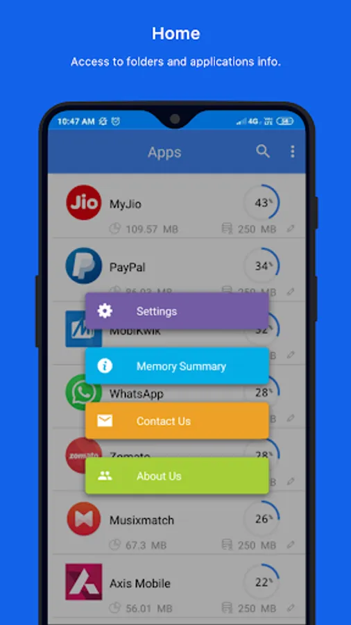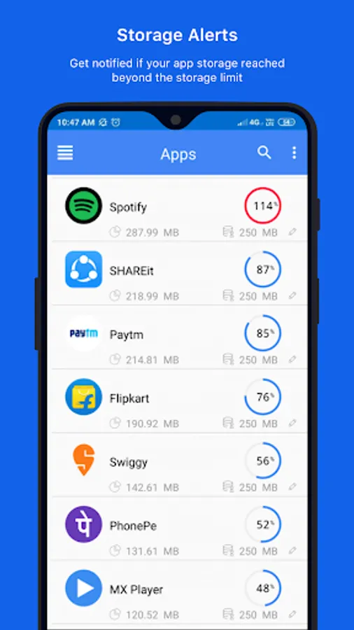 AppWatchPro provides a detailed overview of all your installed apps and their storage usage. With its intuitive interface, you can easily see which apps are taking up the most storage on your phone. But that's not all - AppWatchPro allows you to set storage limits for each app!