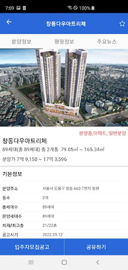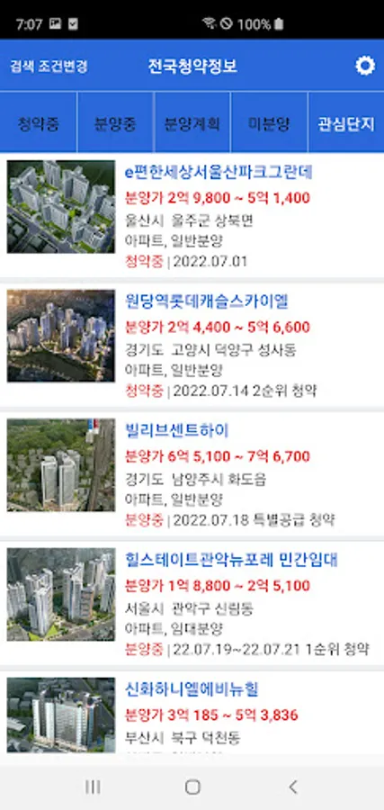 2. Complex of interest - By setting the complex of interest that I have selected, an alert service is provided to match the sales schedule. (Recruitment, reception, announcement depending on the applicable date)