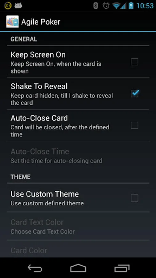 Agile Planning Poker gives you option to customize Card theme, based on your favorite colors and also has several other features for you to explore.