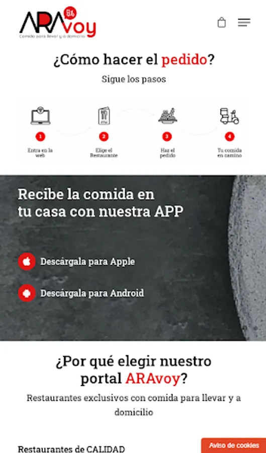 You have your order through the ARAvoy APP, and we will take it to you wherever you tell us, or pick it up at the restaurant, as you prefer.