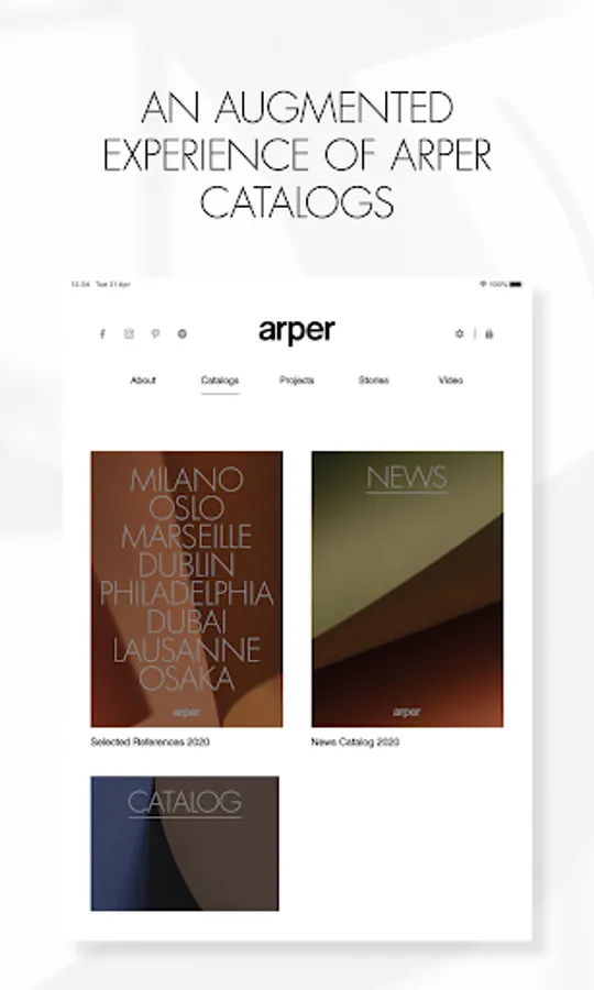 The Arper app allows you to experience our world from anywhere. An interactive experience of the entire Arper catalog lets you visualize our products in context.