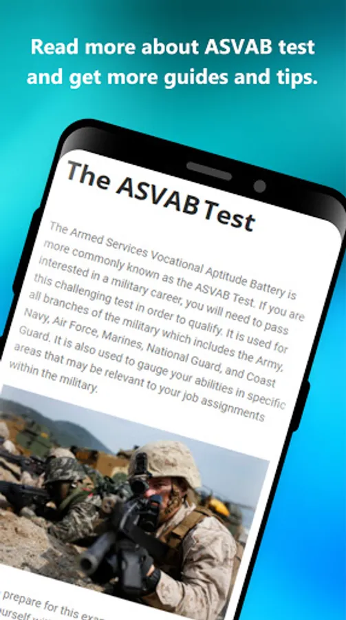 The Armed Services Vocational Aptitude Battery (ASVAB) test measures abilities and helps predict future academic success as well as occupational success in all branches of the military. Candidates have 154 minutes to answer a total of 145 questions.