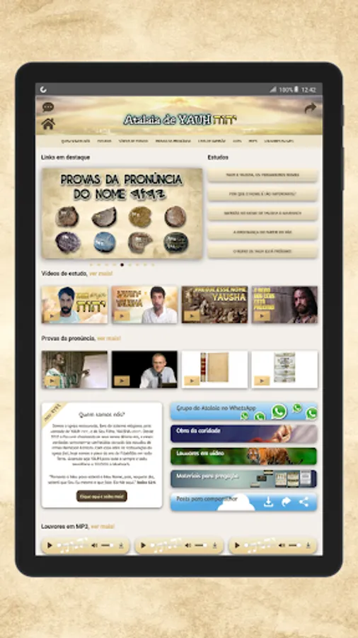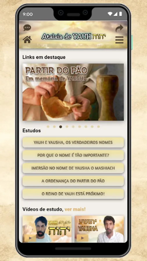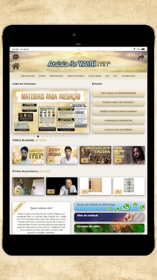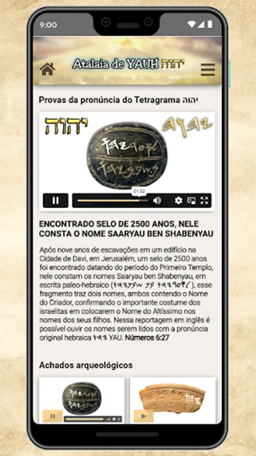 Atalaia de YAUH יהוה application, with various building materials, archaeological evidence, studies, PDF's, videos, immersion list, praises to praise and download, chat, preaching materials, posts to share and much more. Download the App and share!