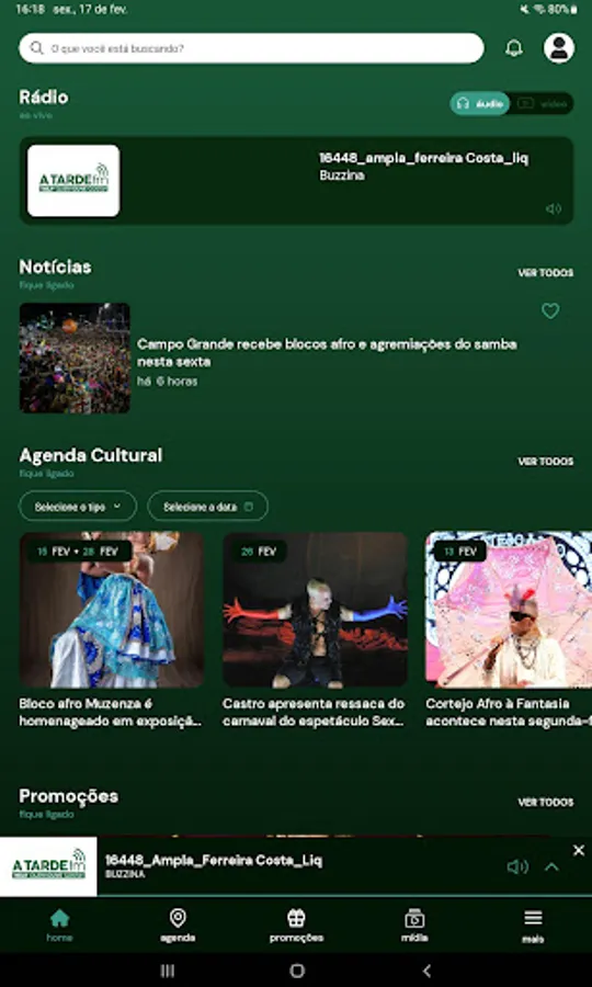 On the App, you can listen to the radio, make comments, request songs, listen to podcasts and program playlists, as well as stay on top of the news, participate in promotions and learn about the cultural agenda of the city and state.