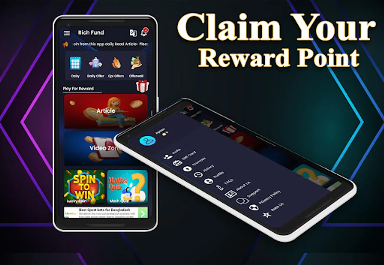Rich Fund App Offers is a best app for user who want to earn cash. there many option for earn cash user can earn cash via download app + invite friend also earn with watch video earn simple app beautiful interface.