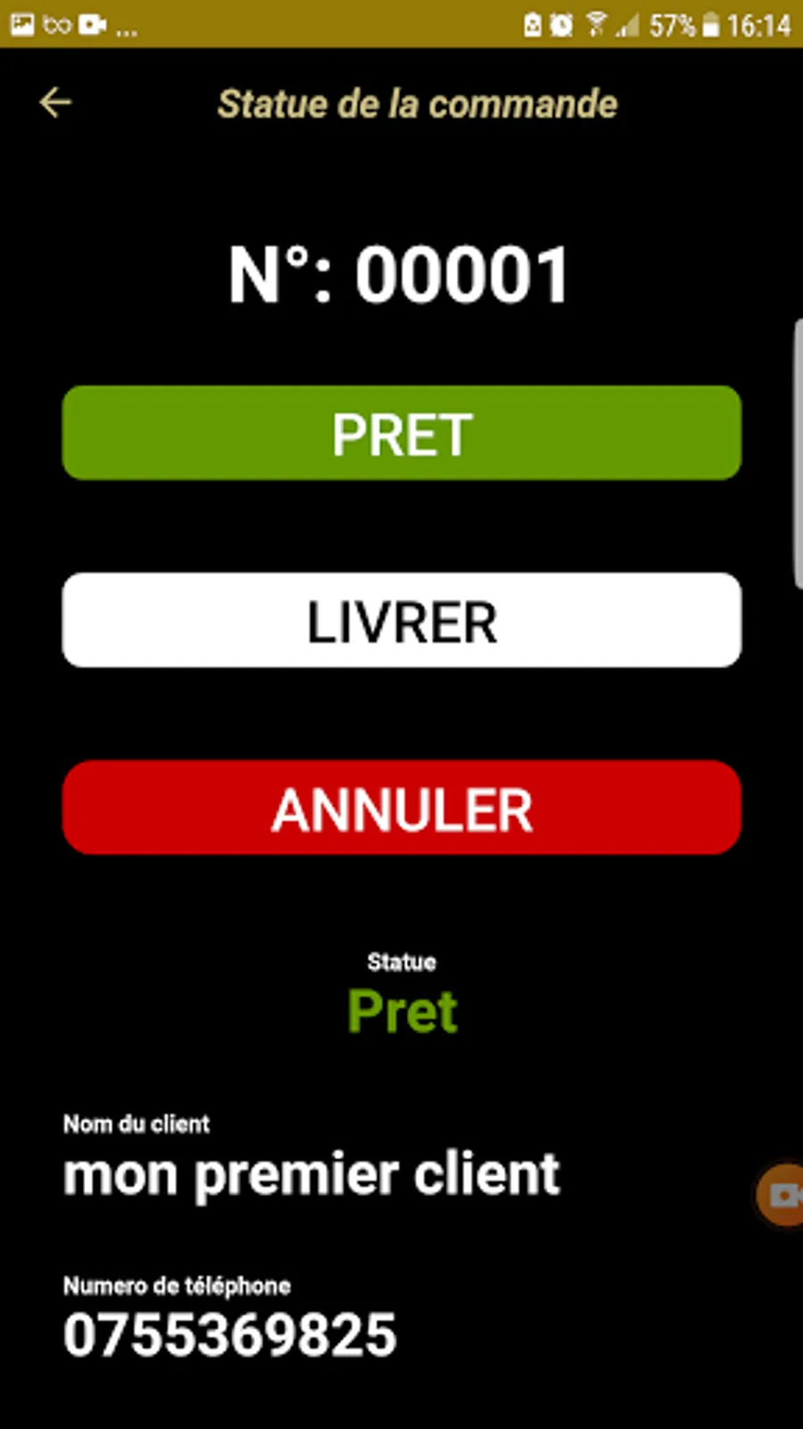 This application allows the company to inform about the advent of orders, by sending alerts.