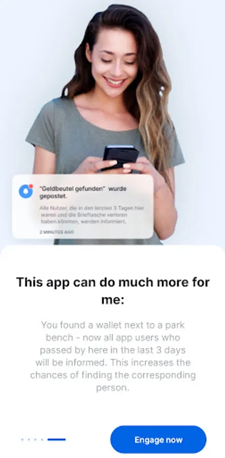 Fast jedem ist schon mal etwas passiert (Fahrrad gestohlen, Parkplatzrempler, Haustier entlaufen) - und wie oft hat man sich schon gefragt, ob nicht jemand etwas gesehen hat. Diese Person gilt es zu erreichen. Zeitungsanzeigen oder Posts in regionalen Gruppen sind meist nicht von Erfolg gekrönt. Mit dieser App erreichst Du die Personen, die sich zum angegebenen Zeitpunkt in der Nähe aufgehalten haben. Wenn eine/r diese/r Personen etwas gesehen hat, kann sie direkt über die App mit Dir in Kontakt treten und Dir so wertvolle Hinweise geben.