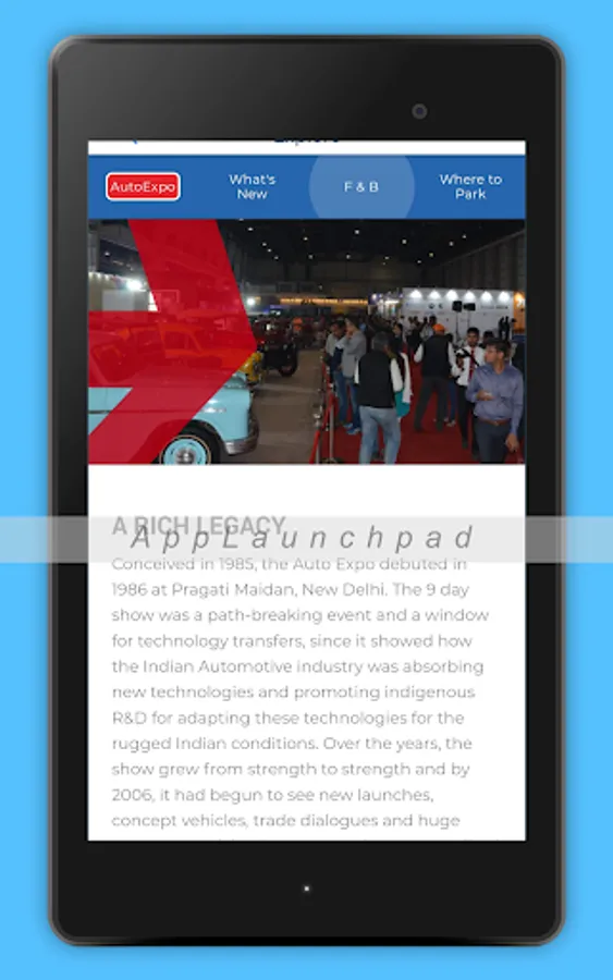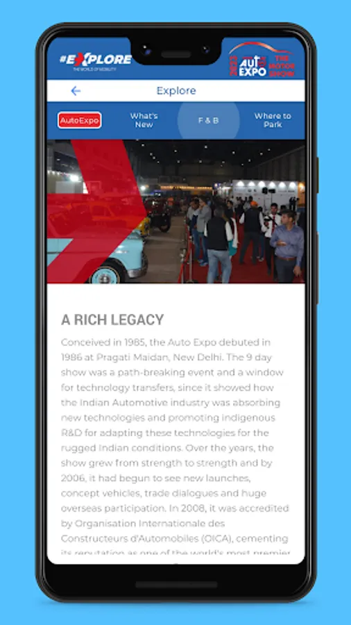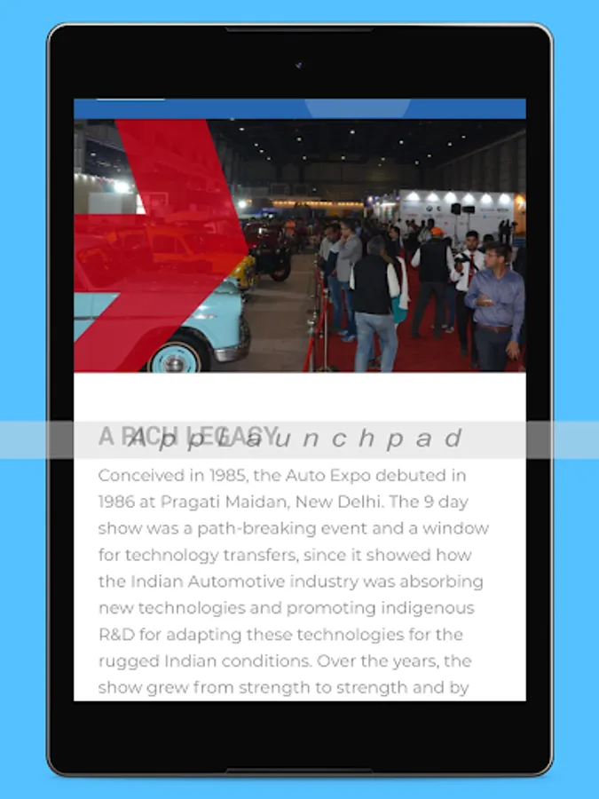 Auto Expo is one of the world's premier auto shows. A signature event, that witness the best minds coming together on a single platform to showcases all that is best in the automotive world, in terms of products, technologies, concepts and trends. Conceived in 1985, the Auto Expo debuted in 1986 at Pragati Maidan, New Delhi.