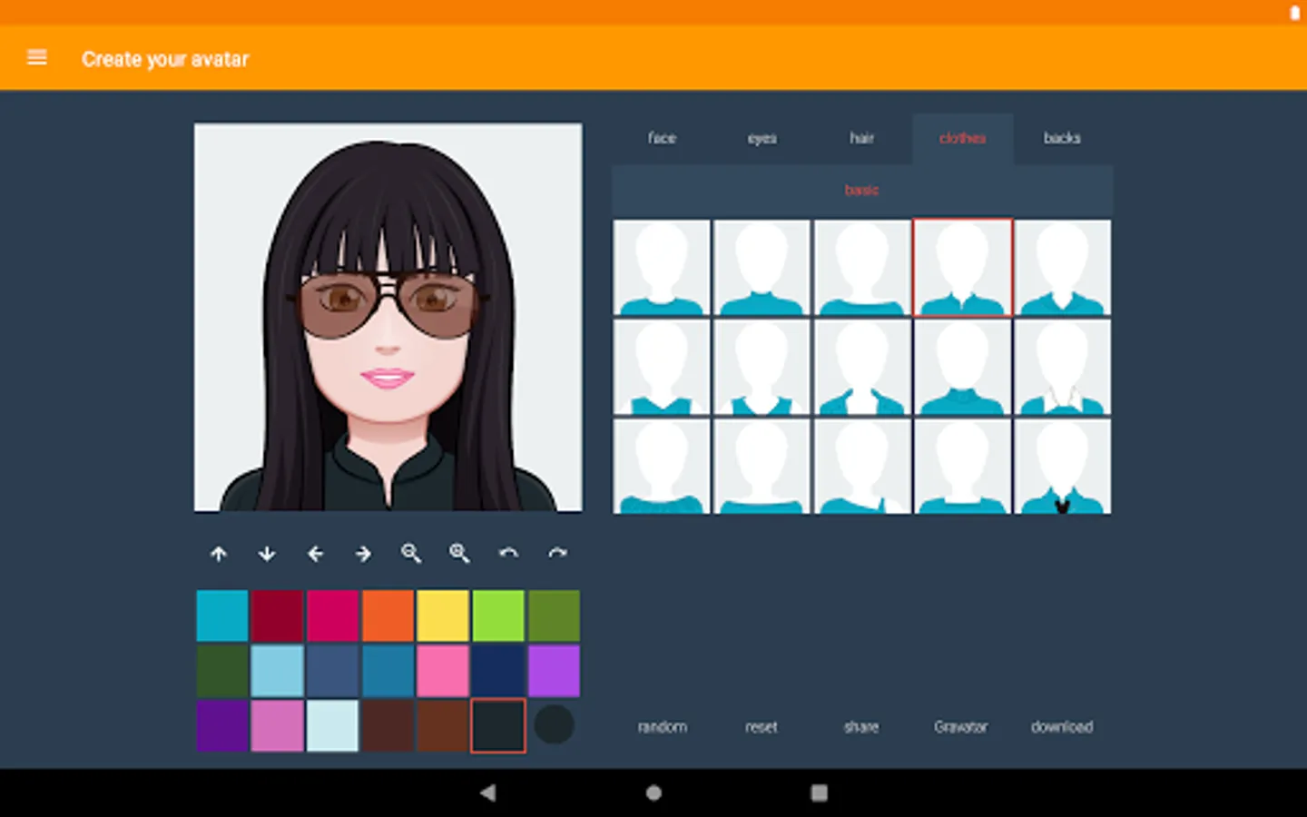 Creating a new character from scratch is as easy as choosing which elements you want to add to your character. There are tons of eyes, lips, hair styles, clothing, noses, eyebrows, and ears. And, of course, not only can you choose from various kinds of hair styles and eyes, you can also choose the color you want to make them. In fact, you can create your own custom colors.