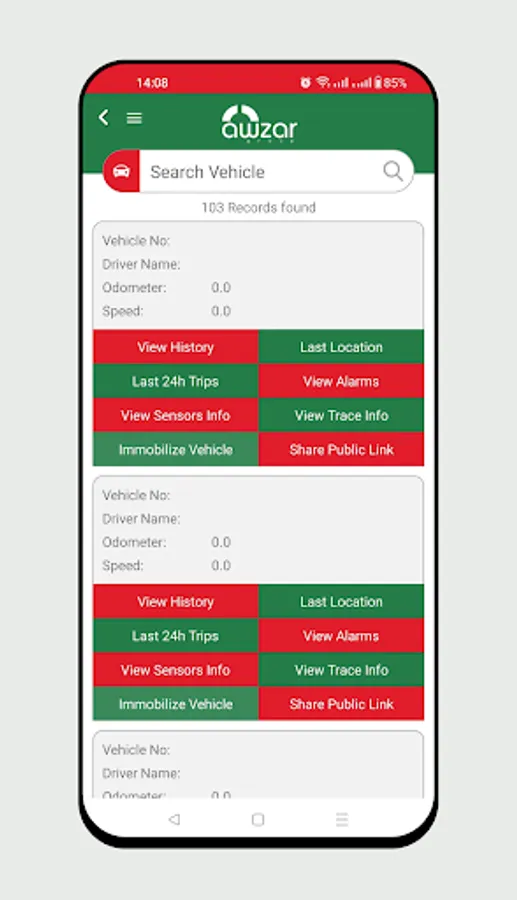 Awzar tracking mobile application covers a subset of main services provided by Awzar web application: