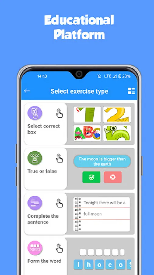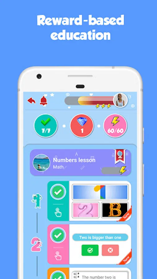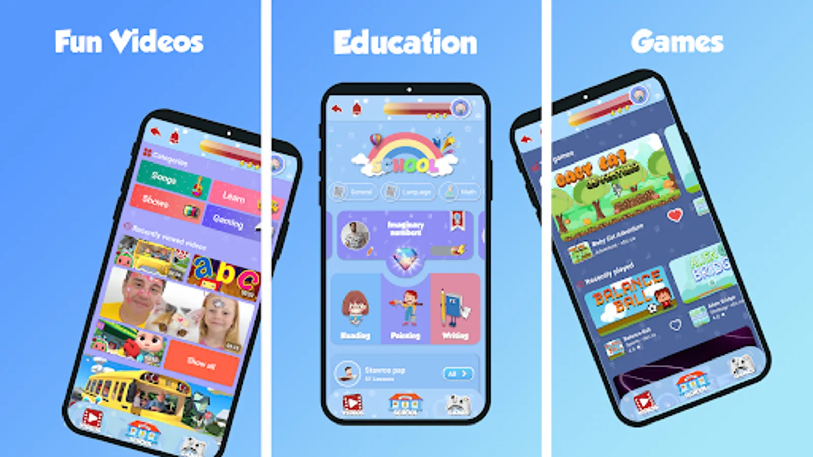 This kids education app is based on the theory of positive reinforcement. Students have to solve lessons and as a reward they can play fun games or to watch entertaining videos.