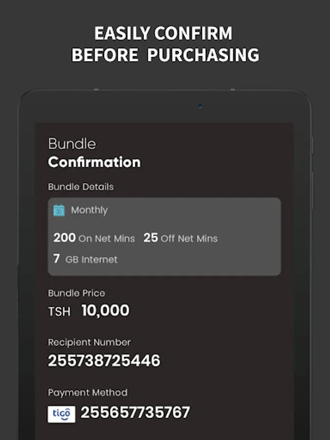 3. Save Time - It takes only 20 seconds to buy a bundle! No need for dialing any TTCL USSD Menu to buy TTCL bundles and Airtime!