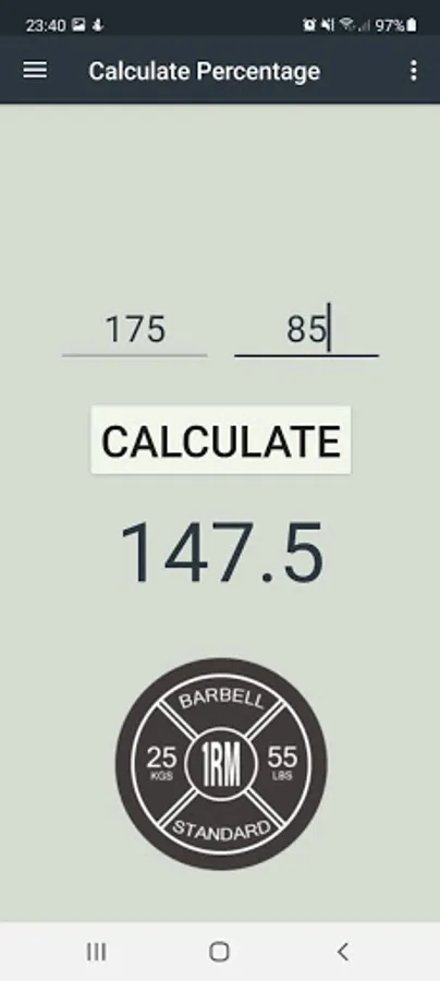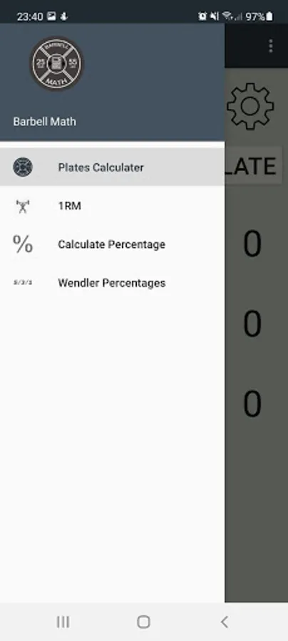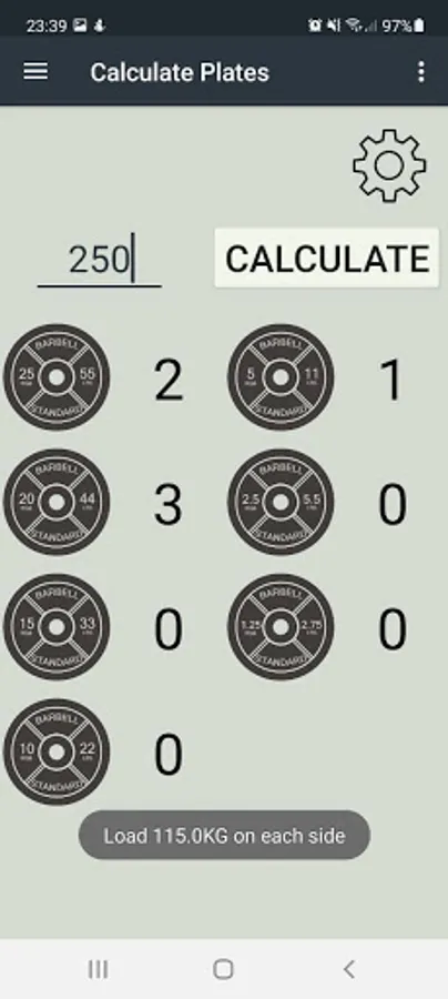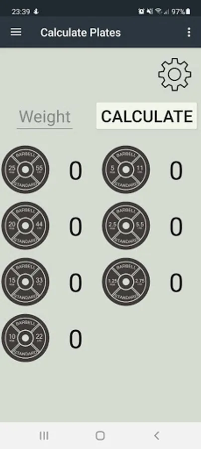 1) Plate Calculator: Calculates the plates and weights on each side for the desired barbell weight.