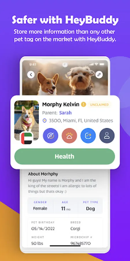 The next generation of pet identification & ownership. Update your pet's vital information at any time without worry. Manage all of your pets from one simple, easy-to-use app.