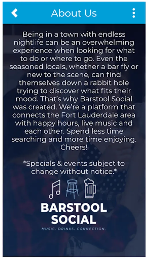 Barstool Social connects Fort Lauderdale to happy hours, brunch, live entertainment and special events in the area in one easy place including a social page to connect with others. This directory makes planning an evening out much simpler and faster.
