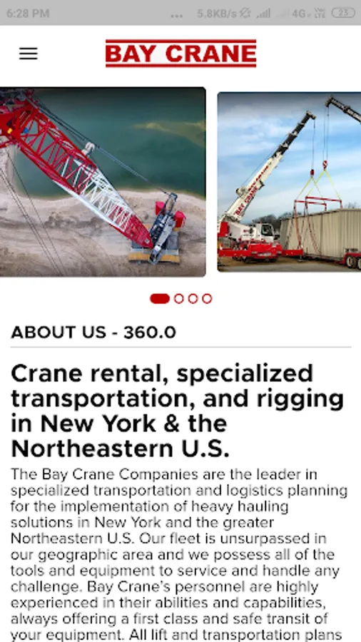Bay Crane’s personnel are highly experienced in their abilities and capabilities, always offering a first class and safe transit of your equipment.