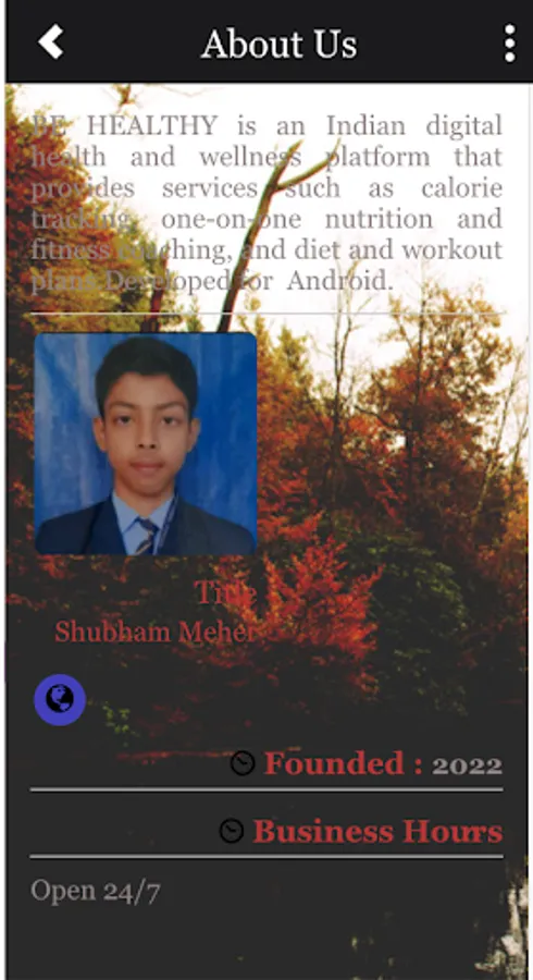 BE HEALTHY is an Indian digital health and wellness platform that provides services such as calorie tracking, one-on-one nutrition and fitness coaching, and diet and workout plans—developed for Android.It is developed by ShubhamMeher