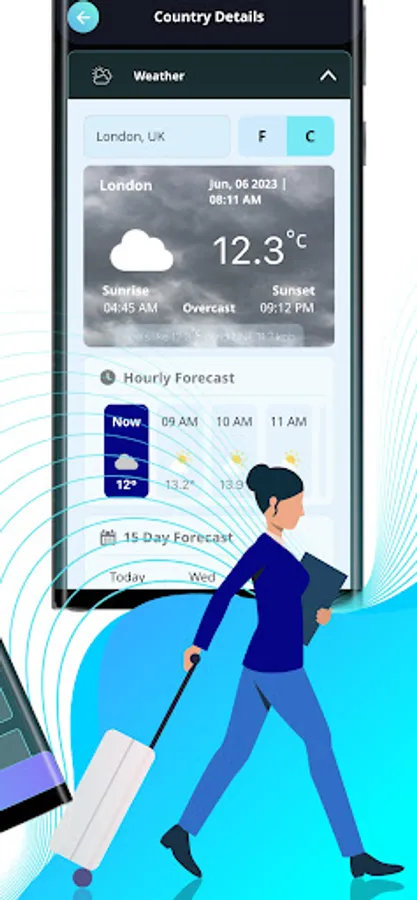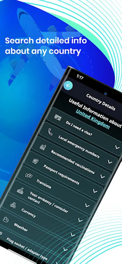 Easily search information on any country such as weather forecasts, plug socket types, local emergency contact numbers, visa requirements, customs allowances and much more.