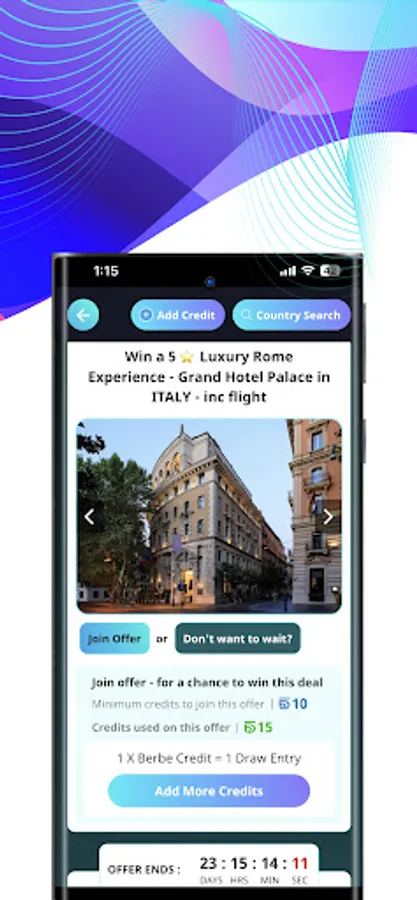 Earn free credits quickly and simply! Spend them right away on joining a range of prize draws for luxury vacation holidays, hotels and excursions. The more credits you enter, the more chance you have of winning the experience of a lifetime.