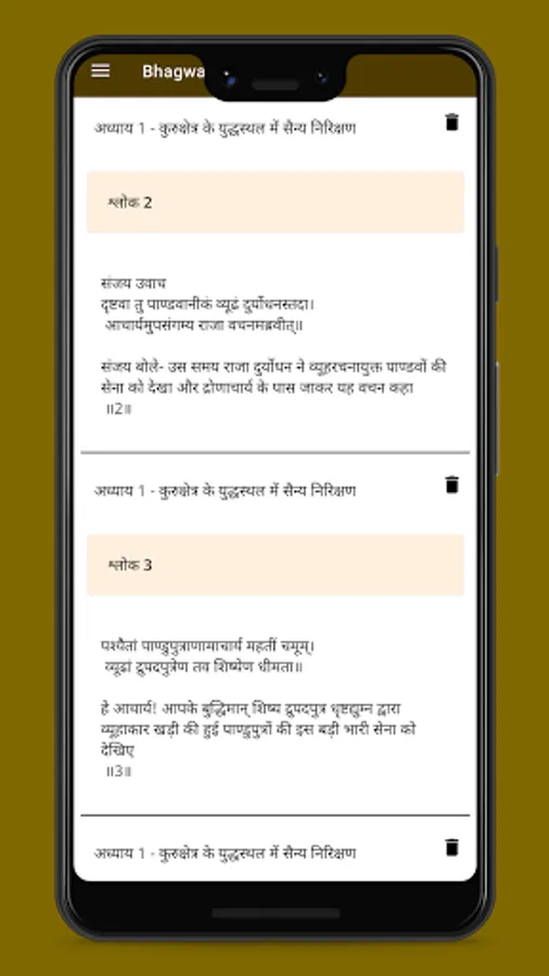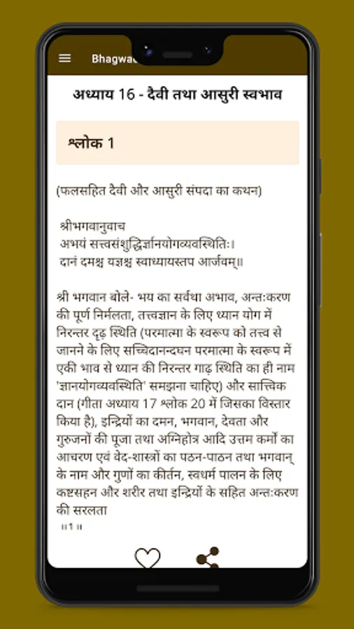 ππ‘ππ ππ―ππ ππ’ππ: Hindi Book App is also in English and Hindi audio is written by Vedavyasa and Indian Mahabharata. The Bhagvat Gita, also known as Geeta, is a 700βverse scripture that is part of the ancient Sanskrit epic Mahabharata in this Shreemad bhagvad geeta. Shreemad ππ‘ππ ππ―ππ ππ’ππ is timeless sacred Hindu scripture though its philosophies & insights reach beyond the scope of all religions & to humanity as a whole. Srimad ππ‘ππ ππ―ππ ππ’ππ is the supreme Purana, and it was compiled by the Supreme Personality of Godhead in His incarnation as Vyasadeva. There are twelve cantos, 335 chapters and eighteen thousand verses. Besides filling up our minds with positive vibrations and thoughts, Shlokas also serve to remind us of helpful philosophy at difficult times.