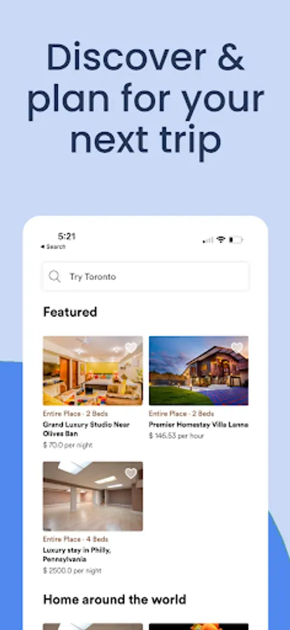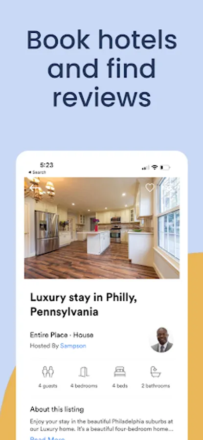 Save and compare places you love. Comments and rate your favorite properties and places. Keep conversations in one place and chat with hosts in real time from anywhere. Book and pay securely with your card, and access details like check-in instructions, WiFi passwords, and more.