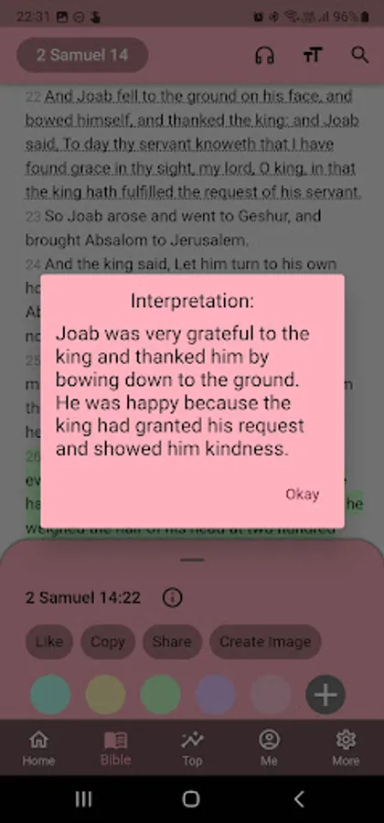 Introducing the King James Bible Simplified (KJBS) app, the ultimate Bible companion for anyone seeking to understand and appreciate the timeless wisdom of the Holy Scriptures. KJBS combines the classic King James Bible with a unique interpret function that translates difficult passages into easy-to-understand language even fifth graders can comprehend. Unravel the mysteries of the Bible without the need for multiple translations or endless interpretations.