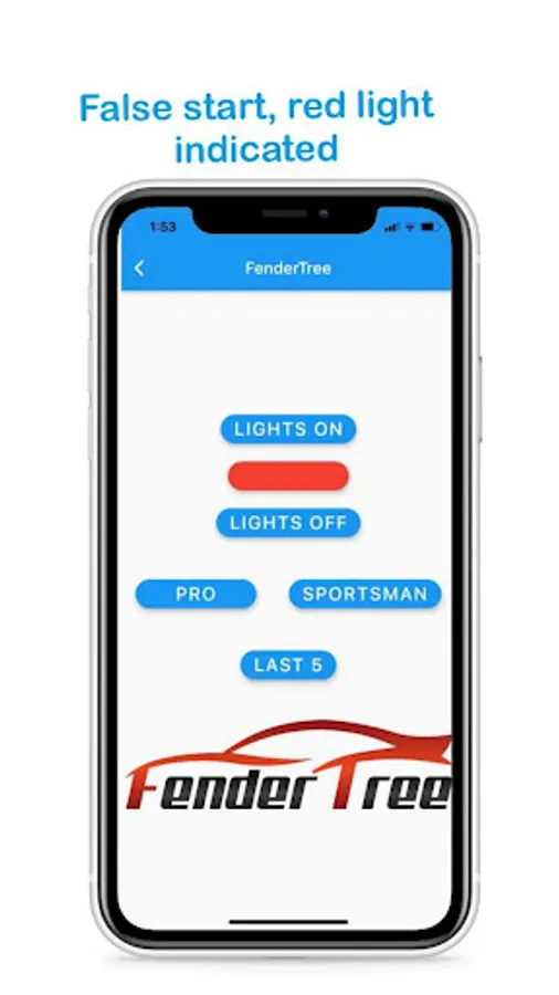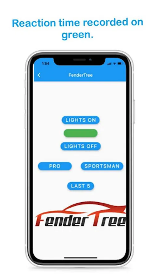 The Fendertree App is your mobile controller for Fendertree. The vehicle-mounted reaction time practice system. Once you have received your Fendertree light power on and simply connect to your mobile device via Bluetooth. The app will allow users two select between two light sequence modes. “Sportsman” will give you a pre-stage amber light that will illuminate for three seconds. Then the sequence will continue with three half-second amber blinks before turning green. Any movement before the green light will activate a red light on the app screen. Once the green light is on simply accelerate your vehicle a few feet and your reaction time will be recorded in the “last 5” feature along with an average. When “Pro” mode is selected the amber light will illuminate for three seconds before quickly switching to green. At which time the same process as a sportsman will apply for time recording. Both the Fendertree app and Fendertree light are intended for off-road use ONLY!