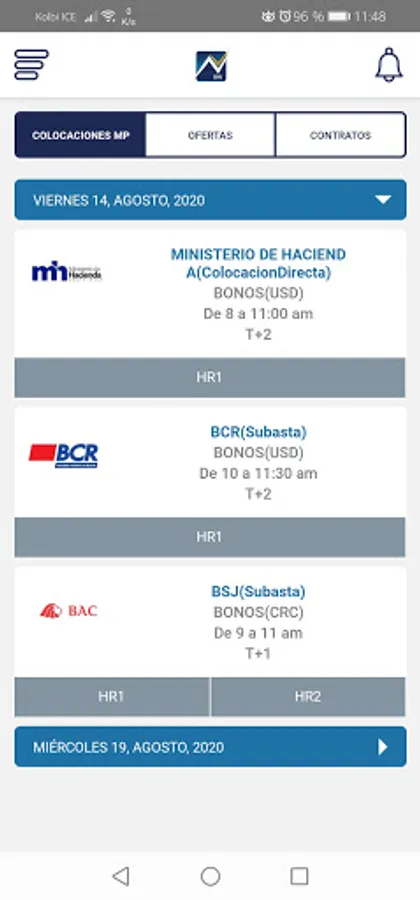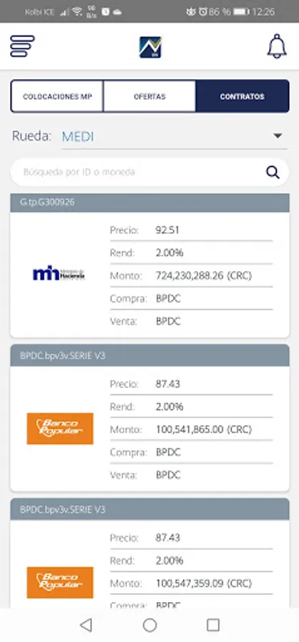 In a single application, you will be able to obtain information on the stock instruments that are traded in our market with their respective price variations, first-hand data on the next primary market placements, offers from the main trading rounds, as well as a detail of contracts closed on the day of consultation.