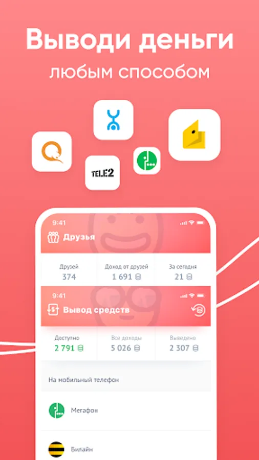 If your mobile earnings from completing regular daily tasks are not enough, invite your friends to the app using a promo link and help them earn! For each friend you will always receive a percentage of his income.