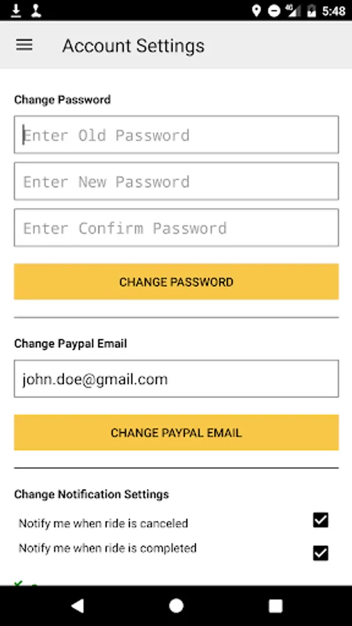 * Notification for ride and payment