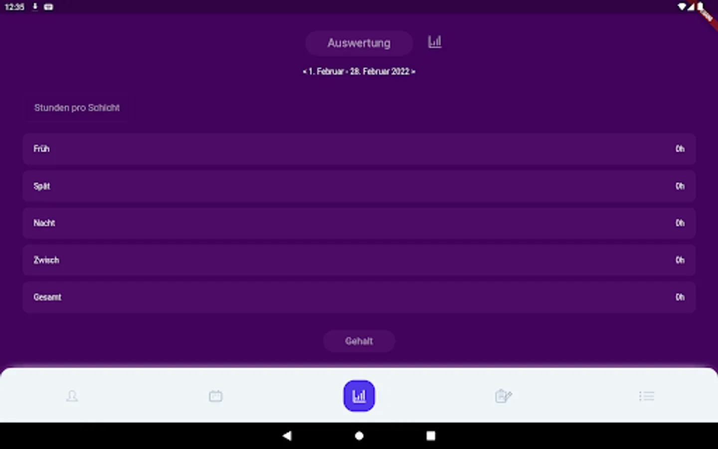 Mit Bullshift kannst du deine Arbeitszeit ganz leicht planen, behältst dein Gehalt im Blick und kannst Stundenzettel ganz bequem automatisch erstellen lassen und versenden.