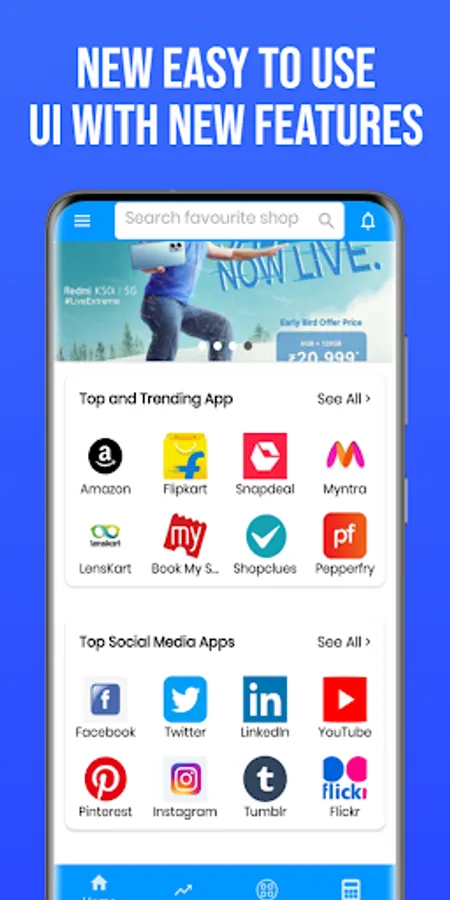 All in One Shopping App is an excellent app for your daily online shopping on your mobile device . It includes most Popular online Shopping Sites of India like - Flipkart, Amazon, Snapdeal, , Shopclues, Paytm, ebay India,and many more websites, also All in one Shopping app which saves your lot of time of using different websites open. They store all the apps at one place from where you can move from one to another by using one tap.