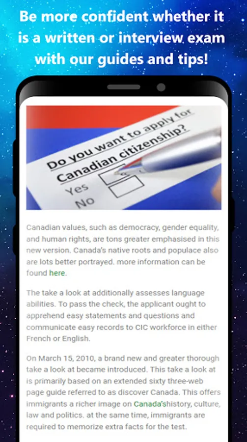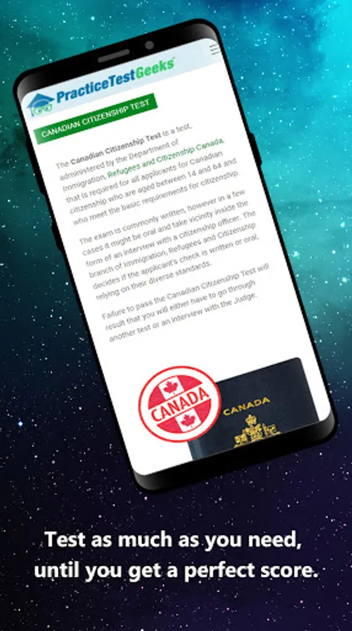 With this free Canadian Citizenship Practice Test, you can prepare for the Canadian Citizenship test. There are many great app features designed to help you quickly learn the citizenship test materials and pass your test with flying colors.