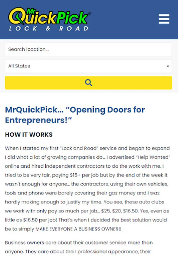 MrQuickPick® USA is a National Service Provider for the USA's major auto clubs. Our services include auto lockout, battery jump start, tire change and fuel delivery. App includes our new Roadside Refund feature for any out-of-pocket expenses. Covered motorists can now email their service receipt directly "from app to agent" to request lightning fast reimbursement from their insurance agency!