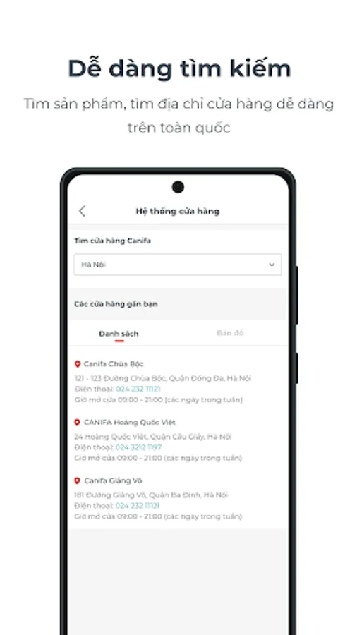 Especially, CANIFA App helps you find the nearest store, order lookup information, exact status and fast line.