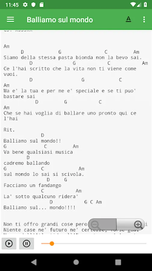 Ability to view chord texts and scores of many Italian singers divided by name.