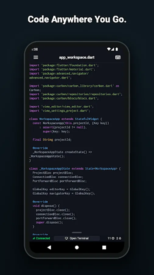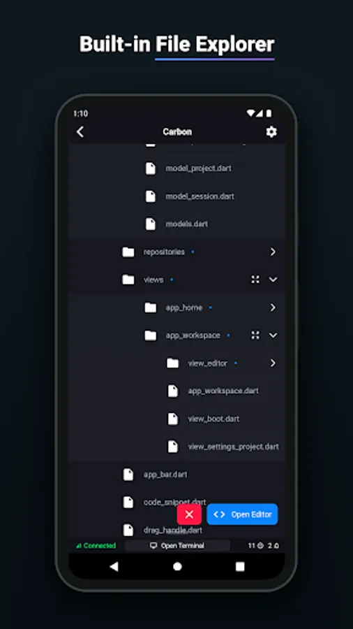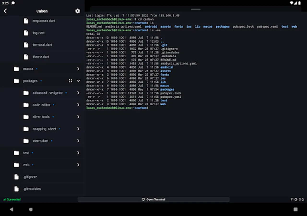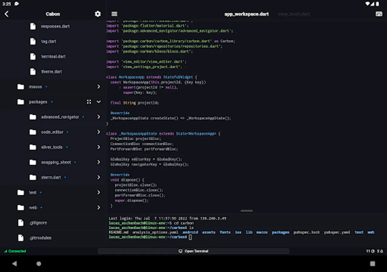 You can connect Carbon to any SSH server and instantly have a full-featured Code Editor, File Explorer, and Terminal available to comfortably interact with the files on your remote system.