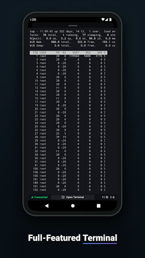 Control your server from the built-in terminal emulator with xterm-256color output. (some functionality is still being implemented)