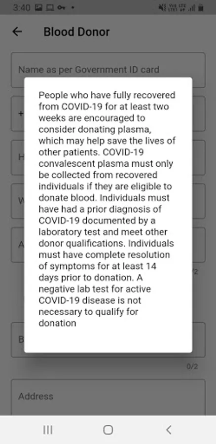In this app you can get information of Blood / Plasma donor near you so that in need you can reach out to donor directly and help saving life of someone.
