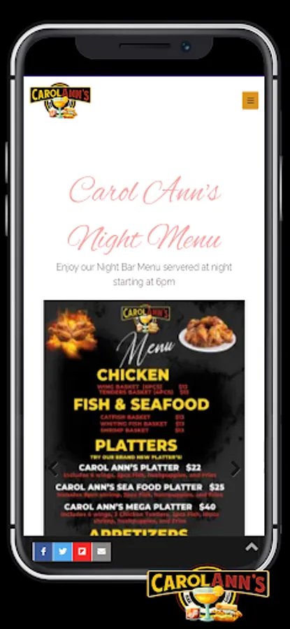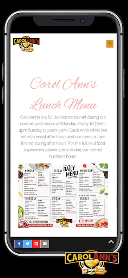 Download our mobile app and check out our daily menu, specials, photos, live videos, and more! Get notifications sent directly to your phone so you can stay connected to all Carol Ann's events and promotions.