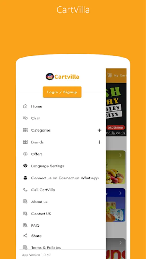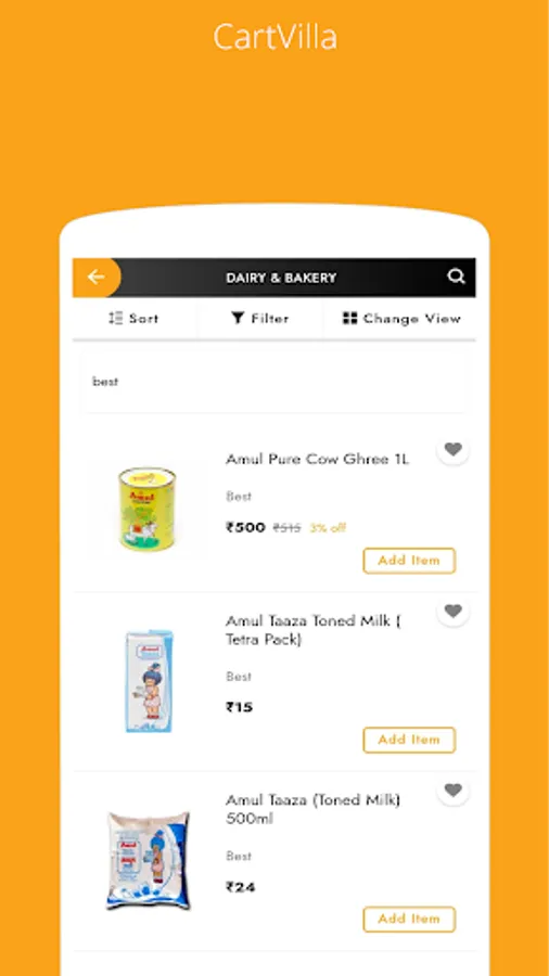 CartVilla is an online convenience store for customers to procure groceries at low costs. We provide you with fresh and regularly stocked up fruits and vegetables, which include seasonal and exotic varieties and all year round types as well. We also have dairy products, pulses, spices, oil ,flours and a lot more. Download the CartVilla app to access multiple safe payment gateway options, offers and coupons on your orders.