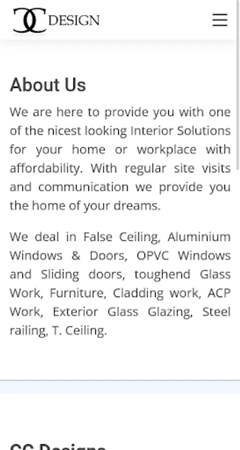 We deal in False Ceiling, Aluminium Windows & Doors, OPVC Windows and Sliding doors, toughend Glass Work, Furniture, Cladding work, ACP Work, Exterior Glass Glazing, Steel railing, T. Ceiling.