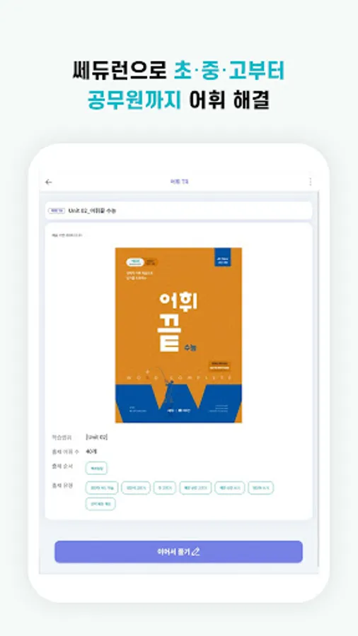 ◈ Online English learning platform that contains everything from problems to interpretation and interpretation of English learning bestseller contents such as Cheon Ilmun, End of Phrases, End of Vocabulary, etc.