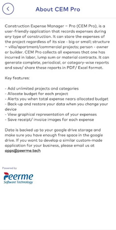 Take periodic backups in the form of Excel or PDF reports and email or save them for future reference. If you are a builder or civil contractor with multiple sites and projects, this app will be of great help.