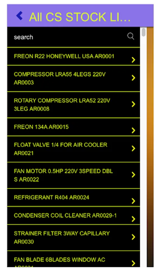 2. Complete list of Item codes