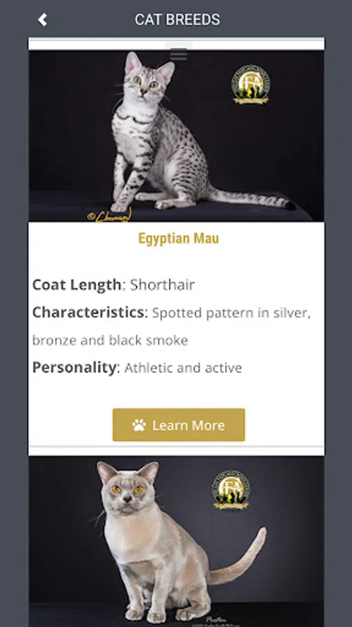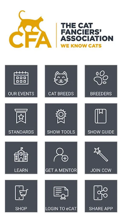With this app, information about CFA, our recognized breeds, and CFA events is accessible to all cat lovers across the globe. Check in regularly for new tools and useful information for CFA exhibitors and cat lovers alike.