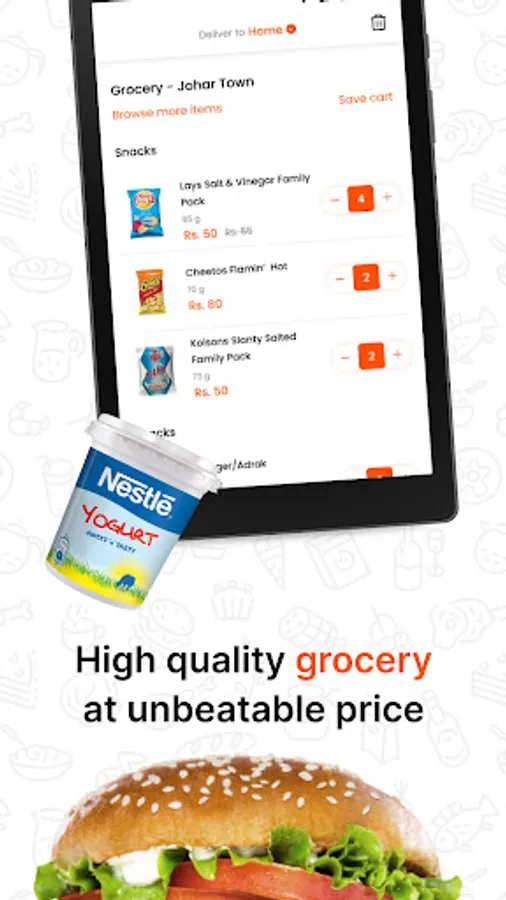Simply browse through food, grocery, medicine, or dairy categories and fill up your cart with the highest quality products. With a smooth check-out process and real-time tracking of your rider, our app makes delivery stress-free.