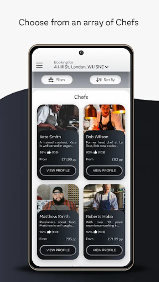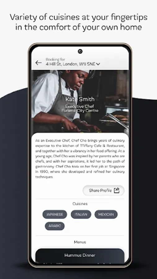 - Choose from an array of different level chefs available to cook for you, whatever the occasion, at a time that suits you in your own home.